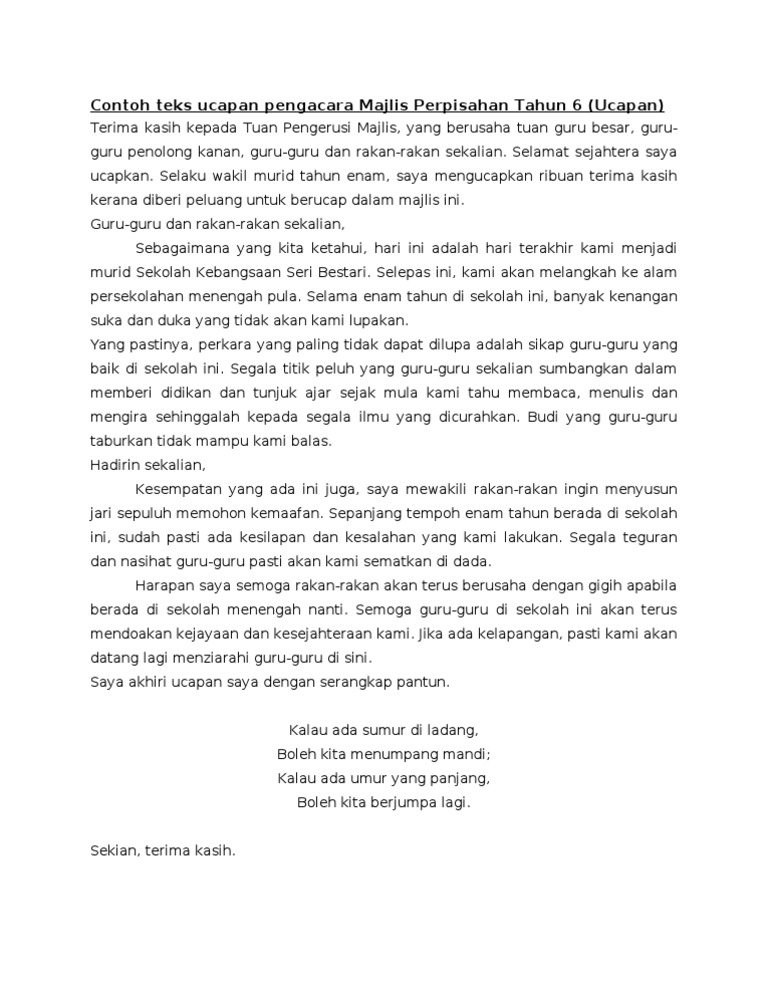 Teks Ucapan Pengetua Majlis Perpisahan Pdf