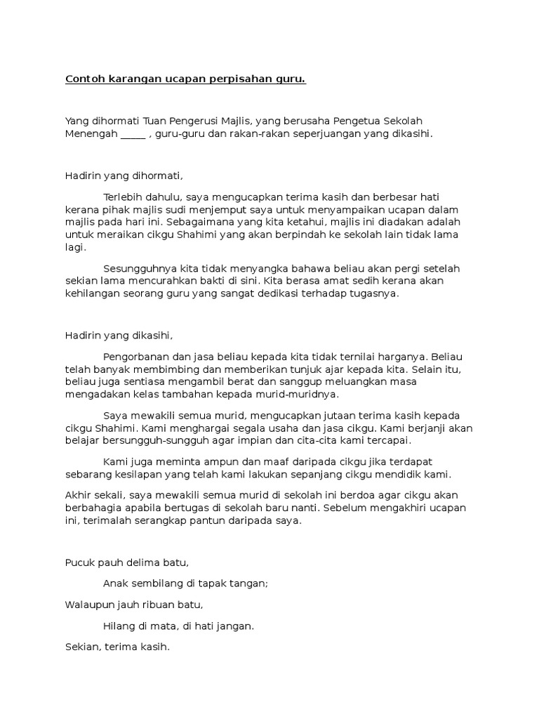 Contoh Karangan Ucapan Perpisahan Guru Sk Rompin Pdf